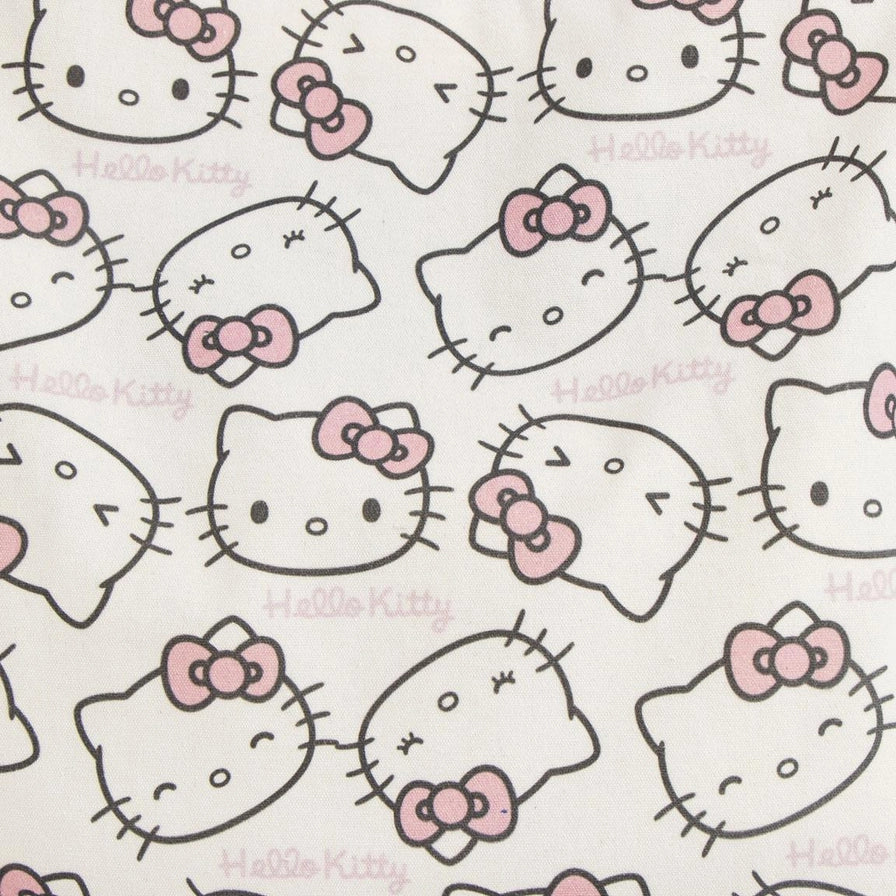 Realizzata in tela chiara con un pattern all-over della nostra iconica Hello Kitty (con fiocchetto rosa, ovviamente), questa borsa è la compagna perfetta per le tue missioni quotidiane: scuola, lavoro o incursioni nerd nel tuo negozio preferito.