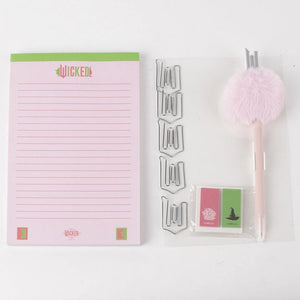 Direttamente da Oz arriva questo set da scrivania ispirato al musical cult Wicked: perfetto per chi ama le streghe, il rosa fluo, il verde mela e i drammi da incantesimo.